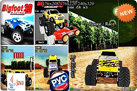 Прими участие в экстремальных 3-мерных гонках на громадных машинах-монстрах, которые за громадные колеса и большую мощность прозвали «бигфутами»! Выбирай одну из моделей этих гигантов и начни карьеру профессионального гонщика! Жанр/Genre: Гонки / Race Категория/Category: Java игры/Java games Размер экрана/Screen size: 176x208 176x220 240x320 Разработчик/Developer: Falcon Mobile Платформа/Platform: Java Формат файла/File format: .jar Вид устройства/Appearance of the device: для телефонов/for phones Язык интерфейса/Interface language: русский (RU) английский (ENG) Размер/Size: 1,34 Mb Поддержка/Support 3D: есть/there are Статус игры/The status of the game: бесплатная/free Подготовил/Prepared by: FileFast
